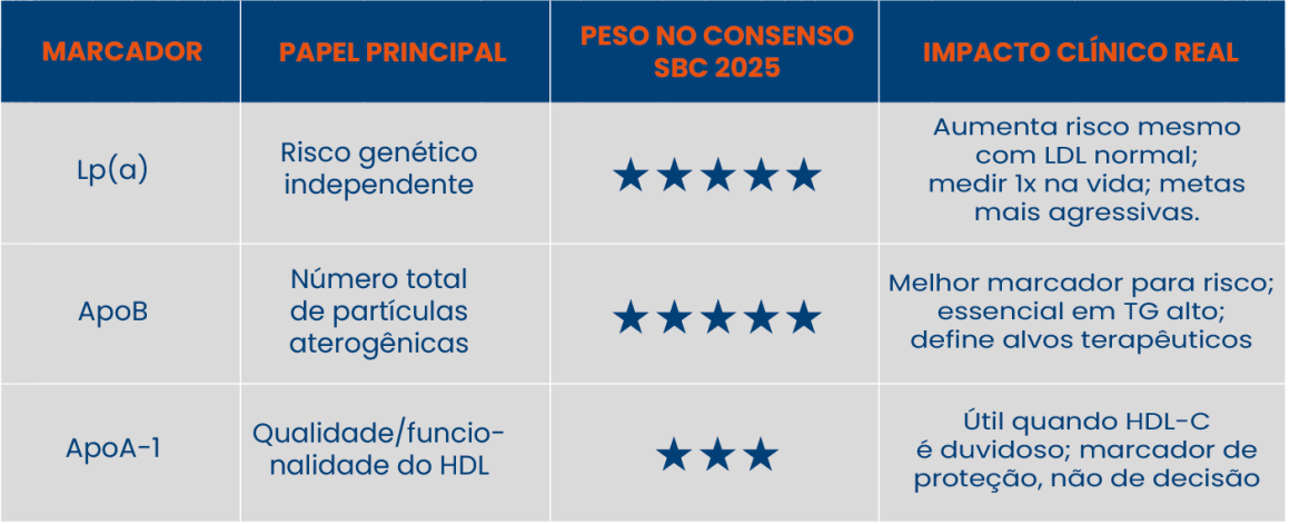 Três marcadores ganham protagonismo absoluto: Lipoproteína(a), Apolipoproteína B e Apolipoproteína A-I